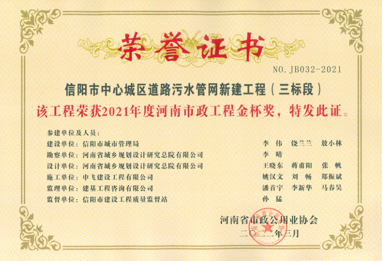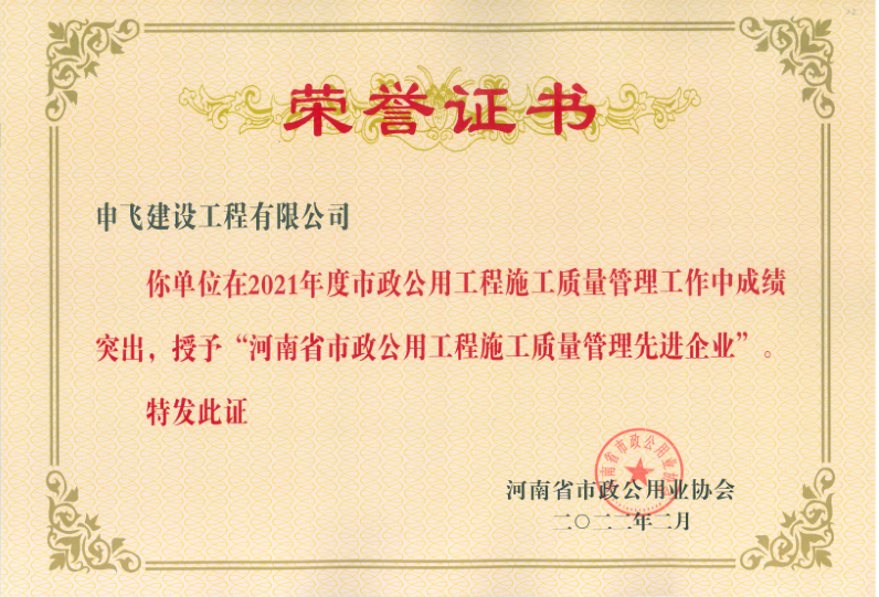 信陽(yáng)市申飛市政工程有限公司原名信陽(yáng)市市政工程公司,注冊(cè)資本1.1億元。公司目前擁有“市政公用工程總承包一級(jí)、市政設(shè)計(jì)乙級(jí)、房屋建筑總承包三級(jí)、環(huán)保三級(jí)、機(jī)電安裝三級(jí)、裝飾裝修三級(jí)、鋼結(jié)構(gòu)三級(jí)”等多項(xiàng)企業(yè)資質(zhì)。公司下設(shè)設(shè)計(jì)公司、物業(yè)公司、商品砼公司等多個(gè)子公司。業(yè)務(wù)范圍包括市政工程設(shè)施管理,城市道路、橋梁和隧道施工、維護(hù),城市給水、排水設(shè)施施工及維護(hù),城市道路、橋涵測(cè)量、設(shè)計(jì),建筑工程,燃?xì)鉄崃Α⒗幚恚A(yù)制構(gòu)件,建筑垃圾運(yùn)輸、處置、加工再利用,園林工程,商品砼的生產(chǎn)與銷售等。